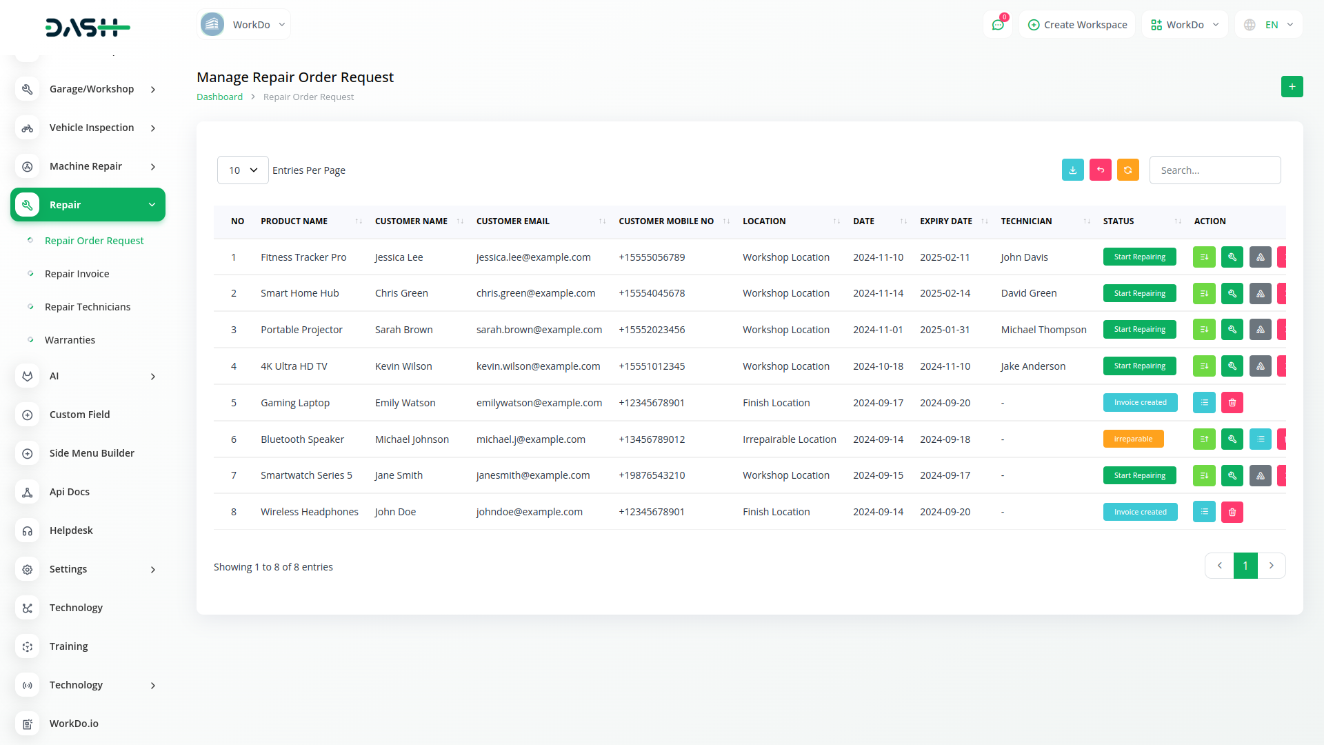 Effortlessly manage repair orders and invoices in one place with Dash SaaS Repair Manager. Simplify your workflow and boost efficiency today!