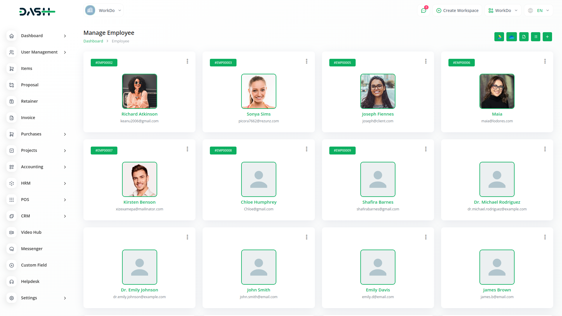 Sus empleados son el mayor activo de su empresa. Ya sea que emplee a 5, 50 o 500 personas, con HRMGo puede gestionar todos los asuntos de los empleados. Desde la contratación hasta el desempeño y los salarios, todo bajo un mismo techo. Sistema completo de gestión de recursos humanos personalizable, versátil y fácil de usar.