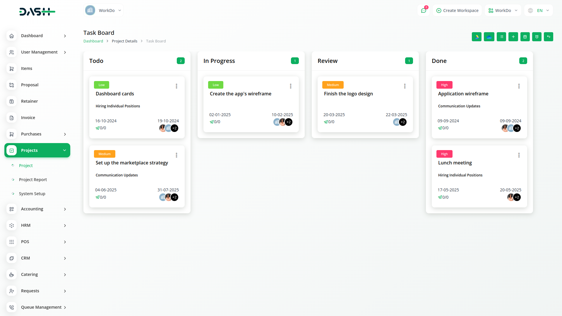 Create new bugs and assign users and priority to them. You can write a note in the text box for the bug description. Also, the status of each bug could be changed through an easy drop-down and Kanban drag system.